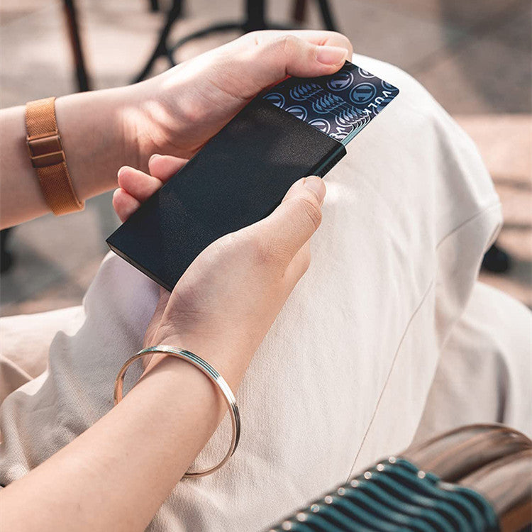 Denna stilrena korthållare är designad för dig som vill kombinera modern design med smart säkerhet. Med inbyggt RFID-skydd blockerar det oönskad trådlös kommunikation, vilket skyddar dina bankkort mot obehörig scanning och digital stöld.